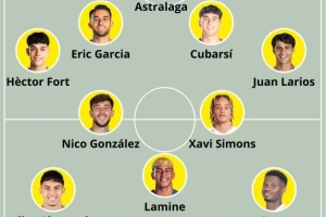 中場:哈維·西蒙斯、尼科·岡薩雷斯、安蘇·法蒂、亞馬爾、阿霍馬克