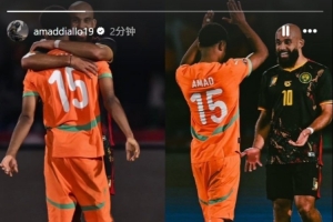 此役,曼聯(lián)球員阿瑪?shù)隆⒛凡謩e代表科特迪瓦、喀麥隆出戰(zhàn),阿瑪?shù)鹿ト胍涣J澜绮ā?/p>