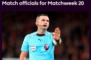 體育資訊12月30日訊 英超官方公布聯(lián)賽第20輪各場(chǎng)裁判,奧利弗將執(zhí)法曼城vs切爾西。