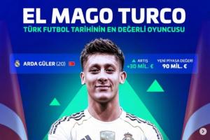 而居萊爾也是第一個(gè)達(dá)到9000萬歐元身價(jià)的土耳其球員,本賽季這位20歲的皇馬中場(chǎng)出戰(zhàn)25次,貢獻(xiàn)3球7助。