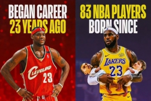 據(jù)統(tǒng)計(jì),目前NBA中有83名球員在勒布朗·詹姆斯于2003年10月30日完成職業(yè)生涯首秀時(shí)甚至還沒有出生。