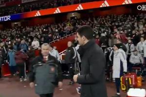 賽后,槍手主帥阿爾特塔先是和助教擊掌相慶,但隨后他環(huán)顧對面一圈,先后回了幾次頭都沒看到維拉主帥埃梅里來握手,只好跳過這個環(huán)節(jié)進(jìn)場恭喜自家球員。