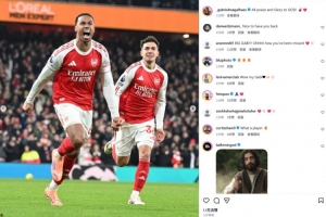 本場(chǎng)比賽加布里埃爾破門先拔頭籌,賽后當(dāng)選英超官方全場(chǎng)最佳。他也在個(gè)人社媒曬出本場(chǎng)慶祝照片,配文寫道:“所有贊美和榮耀歸于上帝!”