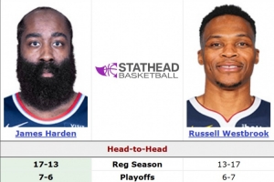 這將是哈登和威少常規(guī)賽生涯第31次交鋒,此前哈登17勝13負略戰(zhàn)小優(yōu),季后賽7勝6負差距不大。