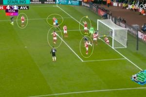 阿森納4-1阿斯頓維拉,槍手補時丟球,蘇維門迪、特羅薩德等人很懊惱