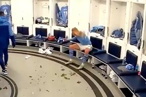 體育資訊12月31日訊 曼城官推曬視頻,更衣室里哈蘭德暴怒披頭散發(fā)砸水瓶,瓶子反彈正好彈進垃圾桶。