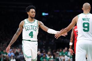 此役,西蒙斯全場(chǎng)15中6,三分球10投4中,砍下20分5籃板4助攻1搶斷,正負(fù)值高達(dá)+ 27。德里克·懷特出戰(zhàn)36分鐘,投籃16中8,三分10中2,罰球9中9,得到27分7籃板6助攻7蓋帽,蓋帽創(chuàng)生涯新高。