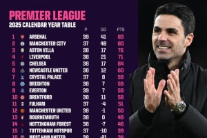 體育資訊12月31日訊 2025年英超聯(lián)賽已經(jīng)落下帷幕,以下是2025年全年度的英超積分排行榜以及凈勝球情況。