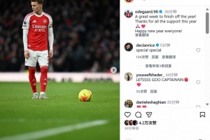 本場比賽厄德高送出精彩助攻,他也在個(gè)人社媒曬出本場照片,配文寫道:“以出色的一周結(jié)束今年賽程,感謝大家一年以來的支持,祝大家新年快樂!”