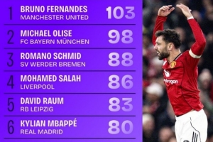 體育資訊12月31日訊 數(shù)據(jù)網(wǎng)站Squawka盤(pán)點(diǎn)了2025年五大聯(lián)賽創(chuàng)造機(jī)會(huì)榜,其中B費(fèi)居首,具體如下:
