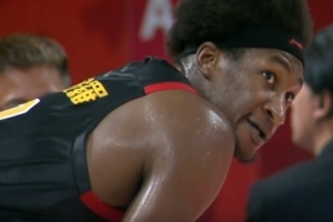深圳外援卡巴上半場替補(bǔ)出場存在感十足,進(jìn)攻端多次上演暴扣,防守端還多次送出蓋帽。