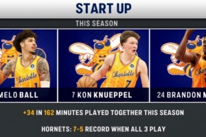同時(shí),他們?nèi)硕汲鰬?zhàn)的比賽,球隊(duì)為7勝5負(fù),而三人沒能同時(shí)出戰(zhàn)的比賽,4勝16負(fù)。