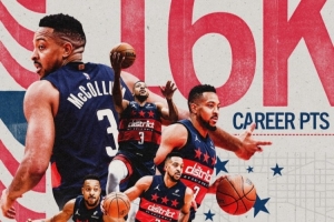 此役,奇才后衛(wèi)麥科勒姆解鎖生涯16000分里程碑,奇才官方分享海報祝賀道:“歡迎加入16000分俱樂部。”