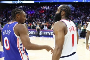 “但我看很多哈登的比賽,那很瘋狂,我還和他當(dāng)過隊(duì)友,有一段時(shí)間他的比賽讓你難以置信,我們都在學(xué)他的后撤步。我也看很多艾弗森的比賽,艾弗森和韋德,那是我最喜歡的球員,但是費(fèi)城的3號(hào)不能穿了。”