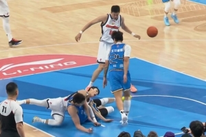 周琦被撞飛后倒地誤傷徐杰膝蓋!后者頭蓋毛巾已被隊(duì)友背下場!
