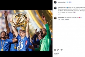 桑切斯曬出自己同馬雷斯卡在世俱杯奪冠后的慶祝同框圖,并配文:“恩佐(馬雷斯卡的名字也是恩佐)、麥基、威利、丹尼、馬科斯和羅比(后幾個名字均是馬雷斯卡教練組成員的昵稱),謝謝你們的一切。”
