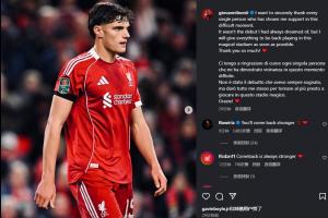 體育資訊09月25日訊 據(jù)名記羅馬諾報道,利物浦18歲中衛(wèi)萊奧尼十字韌帶撕裂,將缺陣數(shù)月,爭取賽季末復出,萊奧尼剛剛更新社媒。