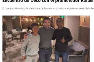 體育資訊9月25日訊 西班牙媒體《每日體育報(bào)》報(bào)道,巴薩體育總監(jiān)德科在酒店與年輕邊鋒拉法-貝利尼奧及其父親會(huì)面。