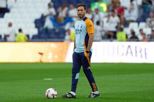 前皇馬助教小安切洛蒂重返伯納烏,現(xiàn)場(chǎng)觀看了這場(chǎng)比賽,他接受采訪時(shí)說道:“阿隆索是非常出色的教練。”
