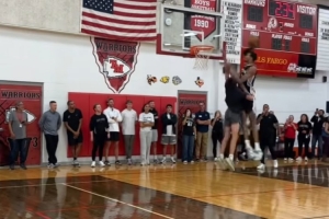 體育資訊9月11日訊 今天馬刺舉行球迷相關(guān)活動,在現(xiàn)場文班亞馬與球迷對位,先是大帽對方,隨后拿到進(jìn)攻球權(quán)后直接突破隔扣對方。