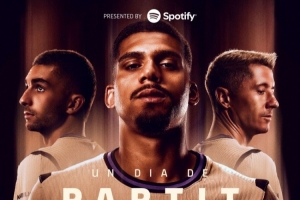賽前,巴薩官方社媒為此役制作海報(bào):海報(bào)中阿勞霍C位,費(fèi)蘭-托雷斯、萊萬在列。