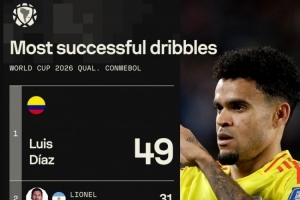 體育資訊9月11日訊 南美世預賽戰(zhàn)罷,Sofascore統(tǒng)計了球員在本屆世預賽中的成功過人次數(shù),并列出榜單,迪亞斯49次居首,梅西31次第二。