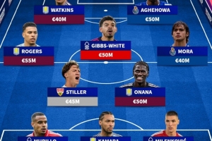 中場(chǎng):羅杰斯(維拉)、斯蒂勒(斯圖加特)、吉布斯-懷特(諾丁漢森林)、奧納納(維拉)、莫拉(波爾圖)