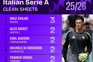 體育資訊9月26日訊 據(jù)Squawka的數(shù)據(jù)統(tǒng)計(jì),在2025年的24場意甲聯(lián)賽中,羅馬門將斯維拉爾保持了14場零封,比其他任何門將至少多3場。