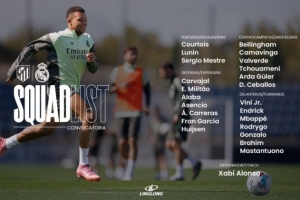 體育資訊9月26日訊 北京時間明天晚上22點15分,皇馬將在西甲第7輪比賽中客場對陣馬競,皇馬公布了此役的球員名單,呂迪格、阿諾德、門迪繼續(xù)缺席。