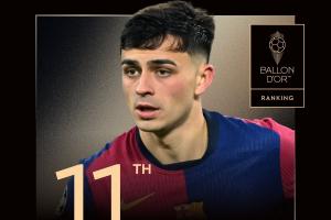 體育資訊09月27日訊 2025金球獎投票詳情出爐,參與投票的100名記者中,僅有31名記者投給佩德里,有7成的記者沒投佩德里。