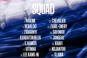 巴黎本場比賽大名單: