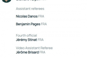 視頻助理裁判:杰羅姆-布里薩、馬蒂厄-韋爾尼斯