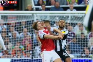 體育資訊09月29日訊 阿森納vs紐卡第82分鐘,約克雷斯禁區(qū)內(nèi)被拉塞爾斯按臉?lè)诺?,裁判未作判罰!