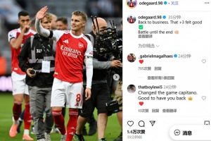 體育資訊9月29日訊 阿森納在本輪英超2-1絕殺逆轉(zhuǎn)紐卡,賽后,厄德高更新了社交媒體。
