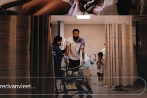 今天,范弗里特在INS曬出了自己在病房的照片,有孩子作陪,并且已經拄拐下地行走。