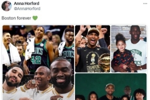 霍福德的妹妹Anna Horford在社媒上曬出了霍福德在凱爾特人與隊友的合照,并配文:永恒的波士頓(Boston Forever)。
