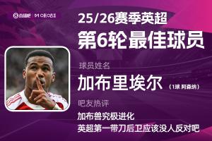 2025-2026賽季英超火熱進行中,體育資訊和咪咕體育聯合發(fā)起每輪英超最佳球員評選活動!第六輪評選結果結出爐,加布里埃爾頭球絕殺,幫助阿森納2-1戰(zhàn)勝紐卡斯爾,獲得吧友8萬票的支持,力壓哈蘭德當選 【體育資訊X咪咕體育英超第6輪最佳球員】!