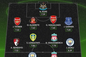 體育資訊10月1日訊 數(shù)據(jù)網(wǎng)站W(wǎng)hoscored盤點(diǎn)了英超9月場(chǎng)均評(píng)分最高陣容,具體如下:
