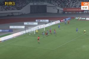 判例三:中甲聯(lián)賽第24輪,蘇州東吳vs南京城市。比賽第48分鐘,蘇州東吳6號(hào)隊(duì)員頭球射門,南京城市守門員將球撲出,助理裁判員示意球的整體已經(jīng)越過球門線,裁判員判蘇州東吳隊(duì)進(jìn)球得分。