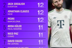 體育資訊10月1日訊 Squawka統(tǒng)計了歐洲五大聯(lián)賽球員在9月份的創(chuàng)造機會次數(shù)榜單,拜仁中場萊默爾位列第一。
