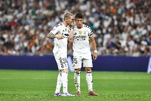 在居勒爾的身邊,馬斯坦托諾也強勢崛起,他成熟的競技狀態(tài)和極具感染力的個性令所有人感到驚訝。馬斯坦托諾的比賽風(fēng)格充滿斗志與激情,同時也展現(xiàn)出穩(wěn)定的天賦。他為阿隆索提供了源源不斷的活力,因為他總是第一個發(fā)起逼搶,在右路不知疲倦的奔跑,把這股能量傳遞給隊友,同時還有突破和制造威脅的能力。如果說居勒爾代表著節(jié)奏掌控、創(chuàng)造力和天生的才華,那么馬斯坦托諾則是著力量、投入和激情的化身。當(dāng)兩人同時在場時,皇馬的整體明顯更加平衡。