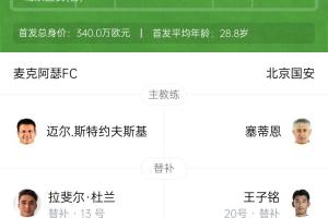體育資訊10月02日訊 亞冠二級聯(lián)賽小組賽第2輪,北京國安客戰(zhàn)澳超球隊麥克阿瑟FC,國安首發(fā)輪換了半支隊伍。