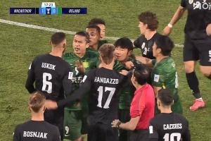 第17分鐘,池忠國飛鏟放倒對手,雙方隨后爆發(fā)沖突,沖突過后裁判未出牌。