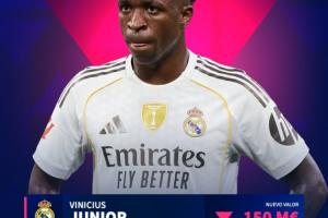 體育資訊10月02日訊 德轉(zhuǎn)今天發(fā)布了最新一期西甲身價更新,維尼修斯成為這次更新的焦點,他的身價從1.7億歐下跌到了1.5億歐。