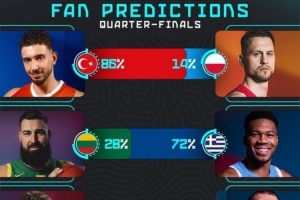 歐錦賽官方發(fā)布1/4決賽球迷預(yù)測(cè)結(jié)果,具體如下: