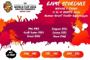 2026女籃世界杯預(yù)選賽武漢賽區(qū)日程出爐,比賽屆時將在武漢體育中心體育館進行,每個比賽日三場比賽。中國隊日程安排如下(開球時間待定):