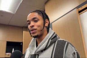 在今天的比賽中,米諾特多次在哨響后封蓋對手的投籃,主帥喬-馬祖拉隨后滿意地走上前去。對此,米諾特表示:“我們不吃這一套。你絕對不能讓對手看到球穿過籃筐?!?/p>