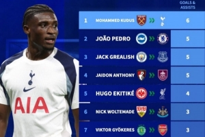 體育資訊10月9日訊 德國轉(zhuǎn)會市場盤點(diǎn)了英超新援參與進(jìn)球數(shù)據(jù),庫杜斯參與6球排名第一。