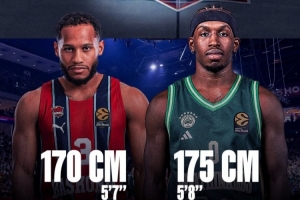 而比賽中發(fā)生了有趣的一幕,帕納辛納科斯身高1米75的小后衛(wèi)TJ-紹茨對上了對面身高1米70的馬基斯-諾埃爾。