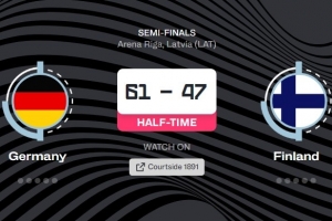 體育資訊9月12日訊 男籃歐錦賽半決賽,德國對陣芬蘭。半場結(jié)束時,德國61比47領(lǐng)先。
